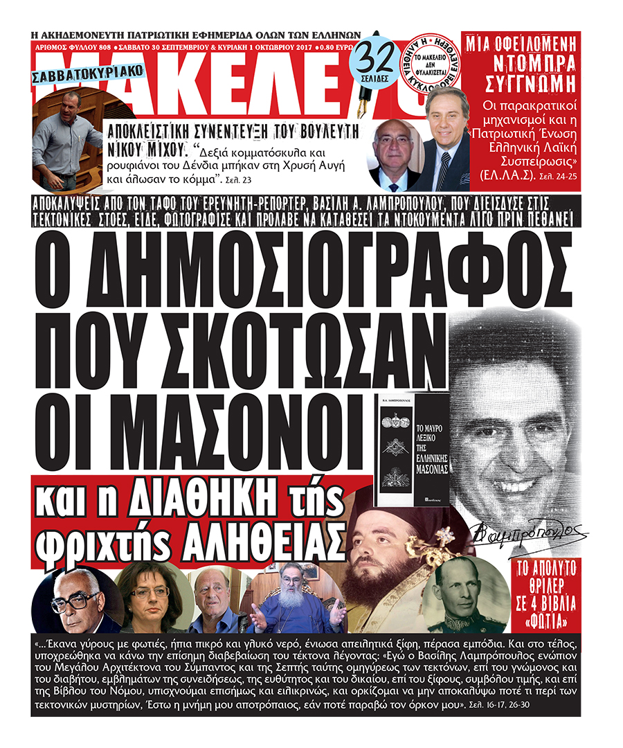 Όποιοι δεν βρίσκουν την εφημερίδα ΜΑΚΕΛΕΙΟ στα περίπτερα ή βλέπουν όλες τις εφημερίδες κρεμασμένες και όχι το ΜΑΚΕΛΕΙΟ, να μας τηλεφωνούν στο 6946- 357733 ή στο τηλ. της εφημερίδος 210-9590361 ή να μας στέλνουν SMS (γραπτό μήνυμα), για να τακτοποιούμε κάποιους- δια της νομικής οδού- που επιδιώκουν το σαμποτάζ και τις επαγγελματικές αλητείες.
