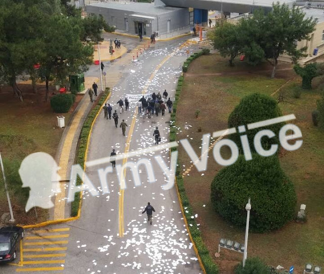 Πορεία μέσα στο υπουργείο Εθνικής Άμυνας, με πανό και προκηρύξεις έκαναν τα μέλη του Ρουβίκωνα όπως φαίνεται καθαρά από την φωτογραφία του Armyvoice.gr