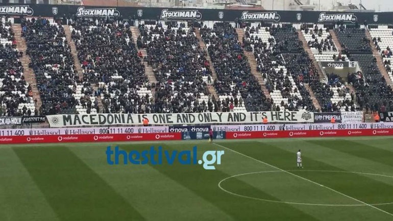 Ωστόσο, εκτός από το πανό που κρέμασαν οι οπαδοί του Δικεφάλου του Βορρά για να στείλουν το δικό τους μήνυμα για την ελληνικότητα της Μακεδονίας από τα μεγάφωνα του γηπέδου της Τούμπας ακούστηκε ο μακεδονικός ύμνος λίγο πριν την έναρξη του παιχνιδιού.
