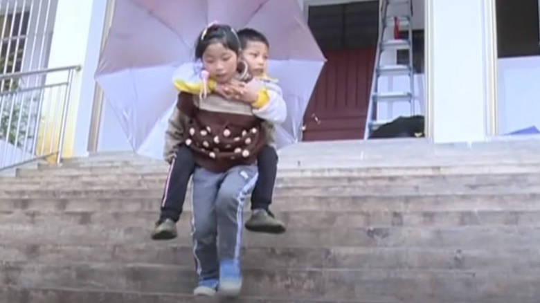 Zhou: Το κοριτσάκι που κουβαλά κάθε μέρα τον ανάπηρο αδελφό της στο σχολείο! (ΒΙΝΤΕΟ)