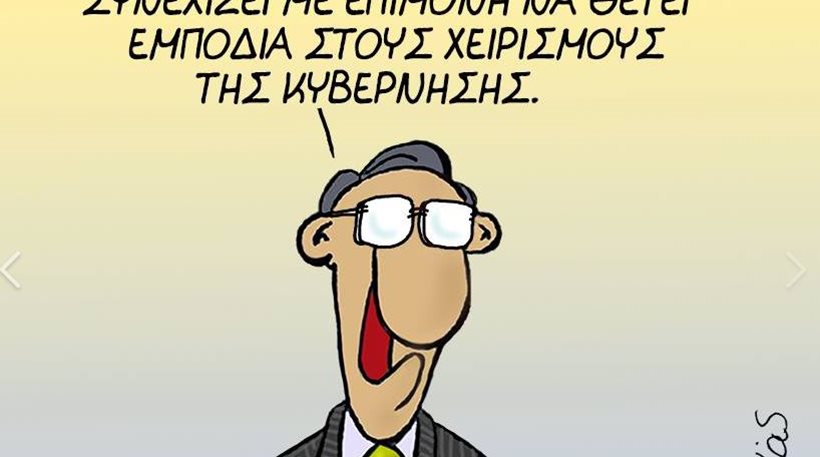 «…Εντωμεταξύ η πραγματικότητα δεν δείχνει καμία συναίνεση και συνεχίζει με επιμονή να θέτει εμπόδια στους χειρισμούς της κυβέρνησης» γράφει στο σκίτσο του ο Αρκάς.