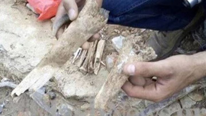 Απομακρύνοντας το χώμα με τα χέρια, αποκάλυψε τα ανθρώπινα οστά αλλά και εξαρτήματα που σύμφωνα με μαρτυρίες, δείχνουν οτι τα οστά πιθανότατα ανήκουν σε πιλότο.