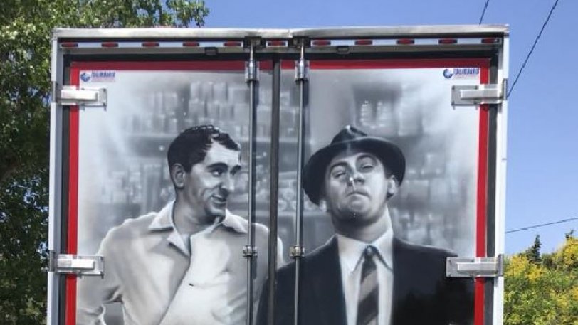 Μία από τις καλύτερες σκηνές της ταινίας «Ο μπακαλόγατος», κάνει βόλτες στην Αθήνα χάρη στον οδηγό ενός φορτηγού.
