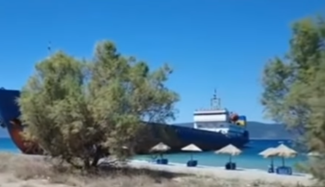 Μπροστά σε ένα αναπάντεχο θέαμα βρέθηκαν οι λουόμενοι σε παραλία στην Εύβοια, όταν είδαν πλοίο να βγαίνει στη στεριά στην περιοχή Κανατάδικα.