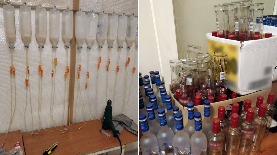 Εργαστήριο εμφιάλωσης αλκοολούχων ποτών επώνυμων εταιριών με περιεχόμενο όμως ουίσκι και βότκα – μαϊμού, κατηγορείται ότι είχε στήσει 36χρονος στους Αμπελόκηπους Θεσσαλονίκης. Eίχε τοποθετήσει μία σειρά φιαλών για φυσιολογικούς ορούς και με βελόνες έφτανε το αλκοόλ στη φιάλη της επώνυμης εταιρίας.