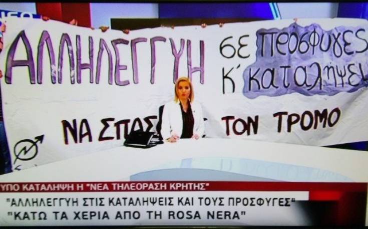 ΕΛΕΟΣ! Κατάληψη στο δελτίο ειδήσεων της Νέας Τηλεόρασης Κρήτης. «Αλληλεγγύη στις καταλήψεις και τους πρόσφυγες»